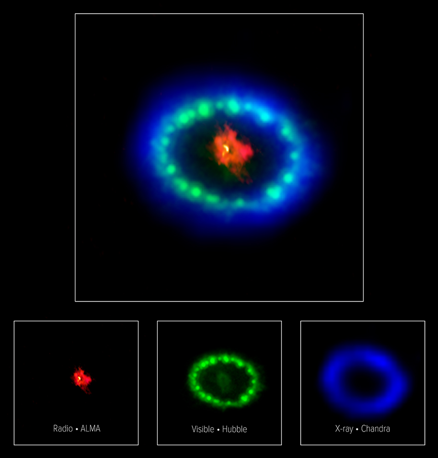 (Credit: Radio: ALMA (ESO/NAOJ/NRAO), P. Cigan and R. Indebetouw; NRAO/AUI/NSF, B. Saxton; X-ray: NASA/CXC/SAO/PSU/K. Frank et al.; Optical: NASA/STScI)